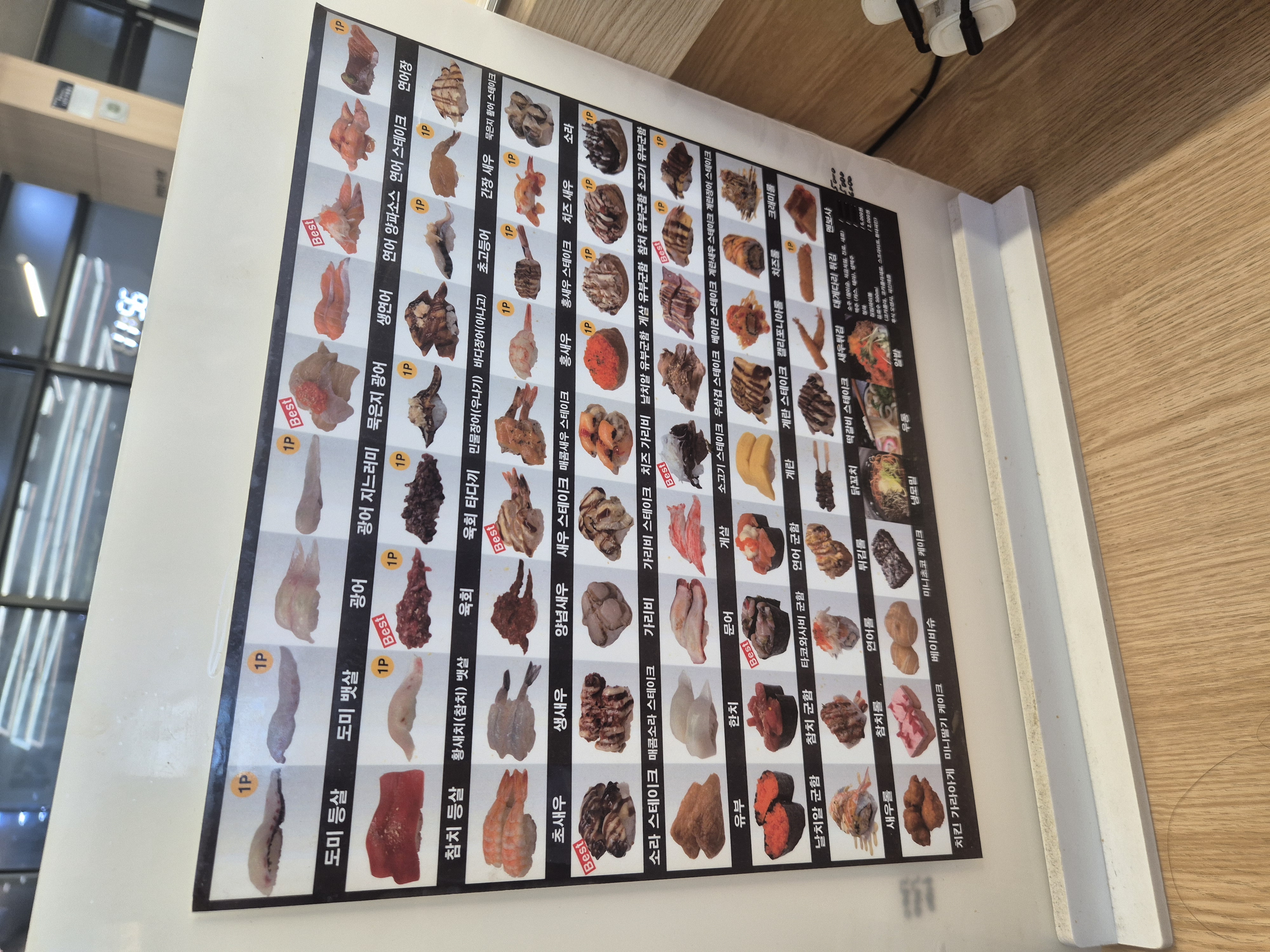 종류가 엄청 다양하진 않지만 기본 초밥 라인업은 충실해요.