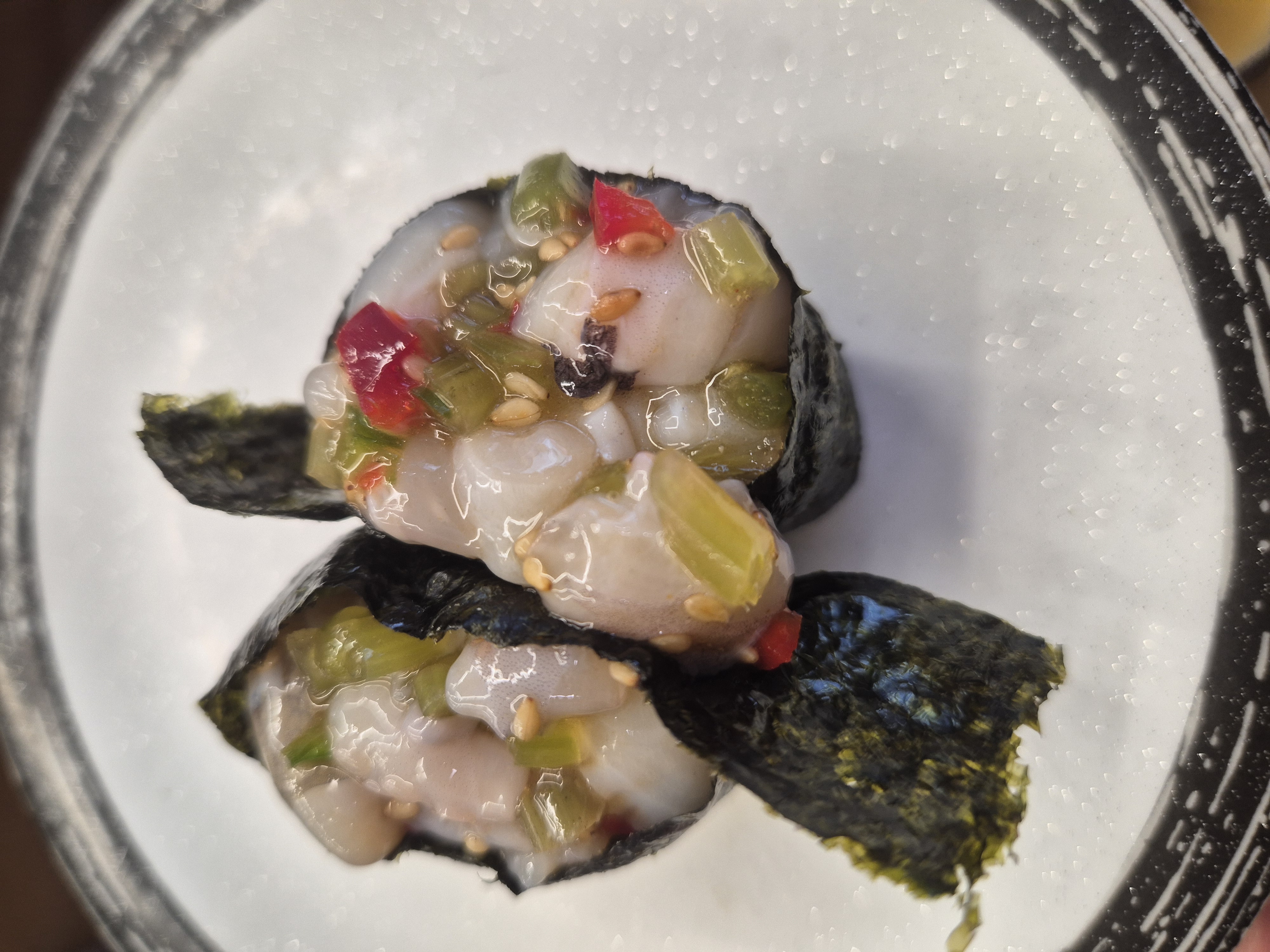 저는 여러 가지를 조금씩 먹어봤는데, 특히 육회 초밥이 정말 인상적이었어요.